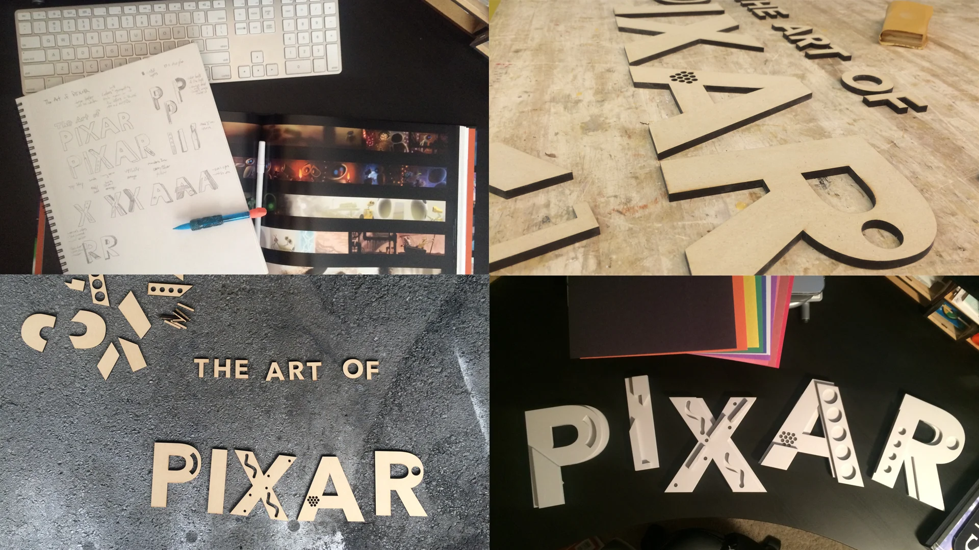 I chose 'The Art of Pixar' as my book. I was able to get color reference and layout ideas from the color scripts throughout the book. My concept was to have a different Pixar movie theme in each letter of the word. Can you guess which is which?